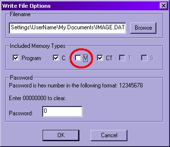 with V-memory deselected for the <Write File>. In